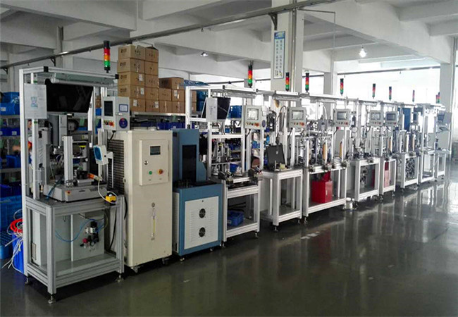 汽车发动机电子水泵总成装配线通过激光焊接、CCD检测、气密性测试、自动焊锡、转速测试、超声波、性能测试等工艺对产品进行装配,有料检测、防呆检测、噪音测试、综合性能测试等,测试合格后贴条码,整线有数据收集功能。